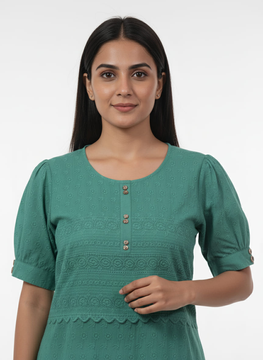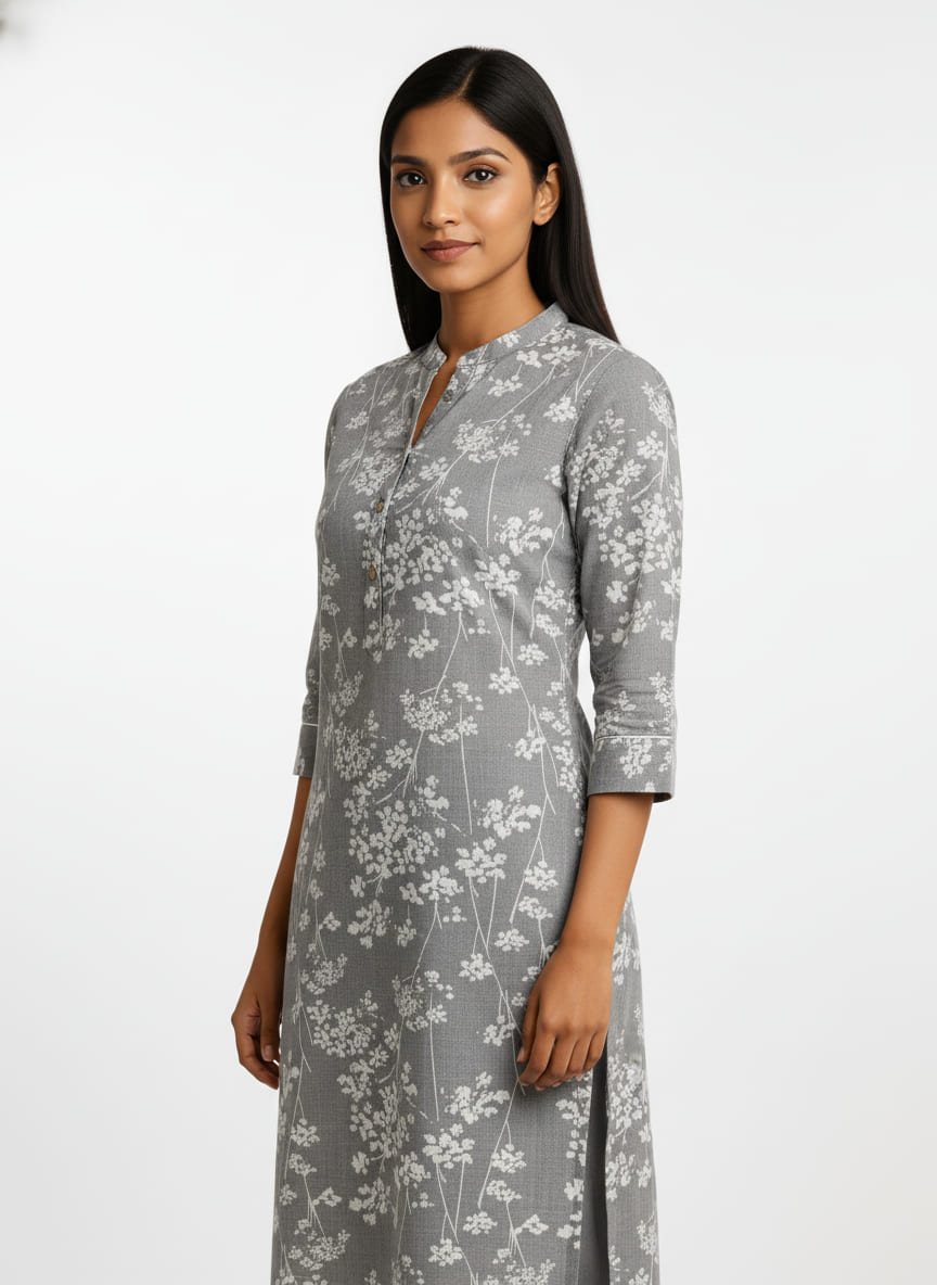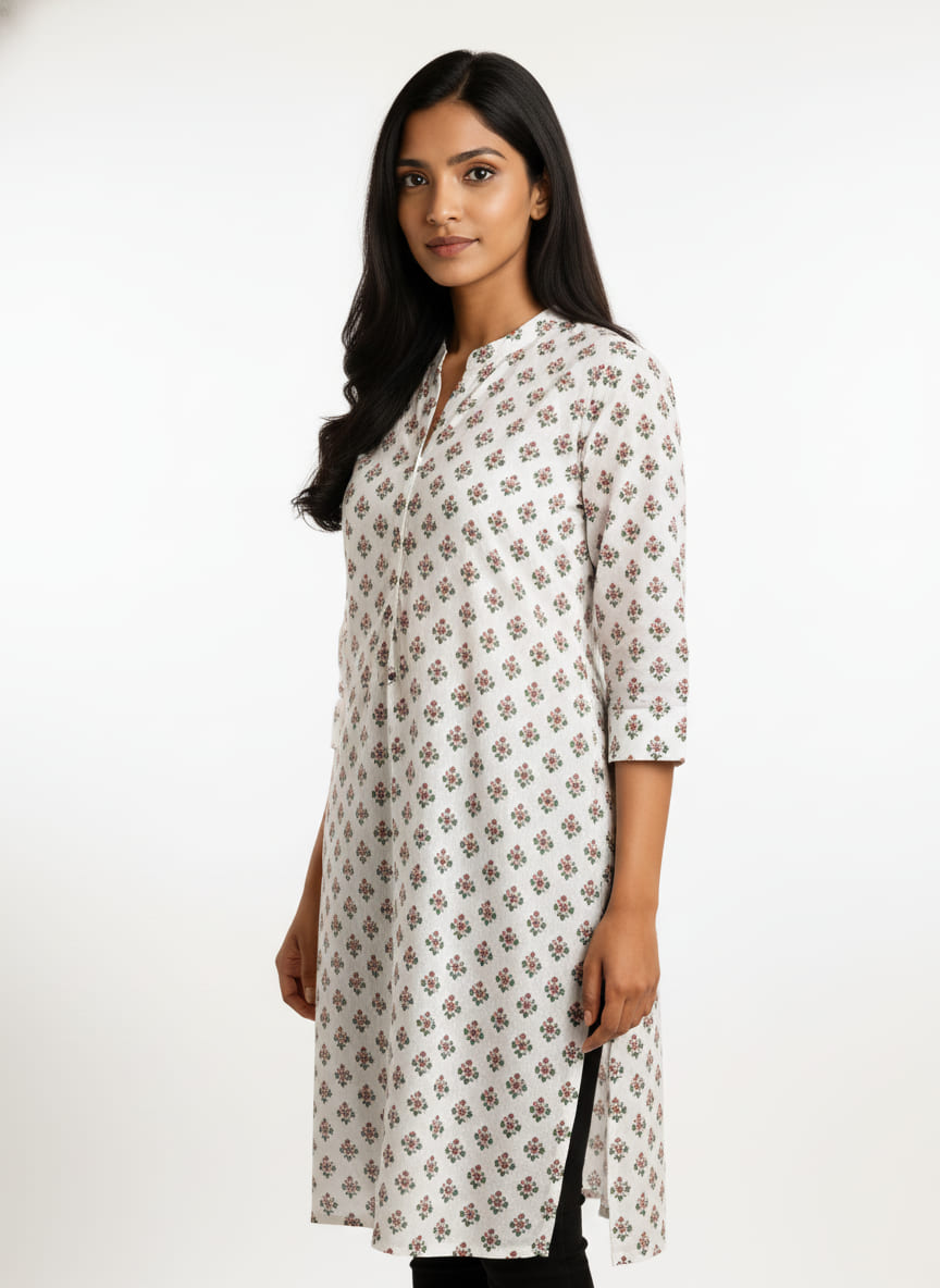 3/4th Sleeve, Front Embroidered Printed Kurta